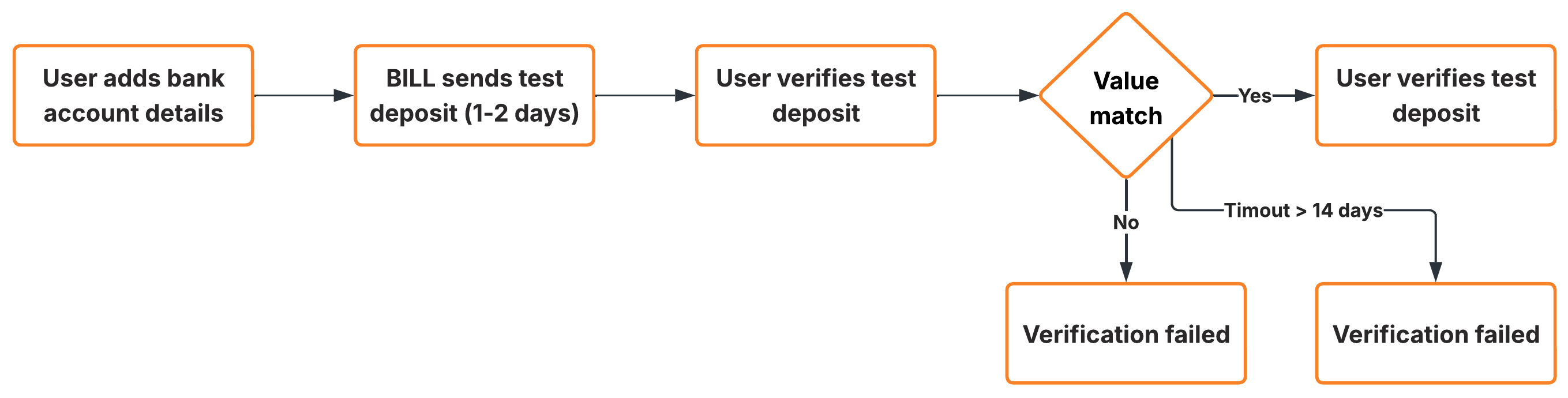 - Private vendor bank verification: After manually adding a private vendor’s bank info, BILL posts a test deposit within 1–2 business days to perform verification on their account. If a payment is sent to the vendor during this verification period, the payee may experience a 1-2 day delay in delivery until BILL verifies the account.