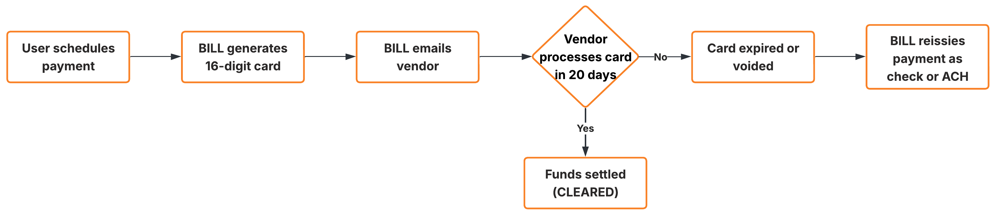 BILL processes a card payment with your card provider and then disburses the vendor via check, ACH, or virtual card.